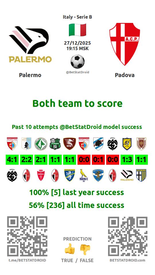 ✔ Padova scores under 2,5 goals in each of 18 last games