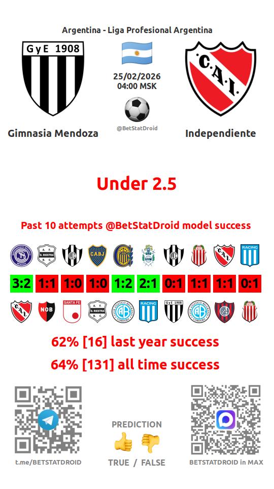 ✔ Gimnasia Mendoza scores under 1,5 goals in each of 7 last games