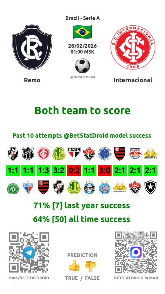 ✔ Internacional lost goals in each of 11 last games