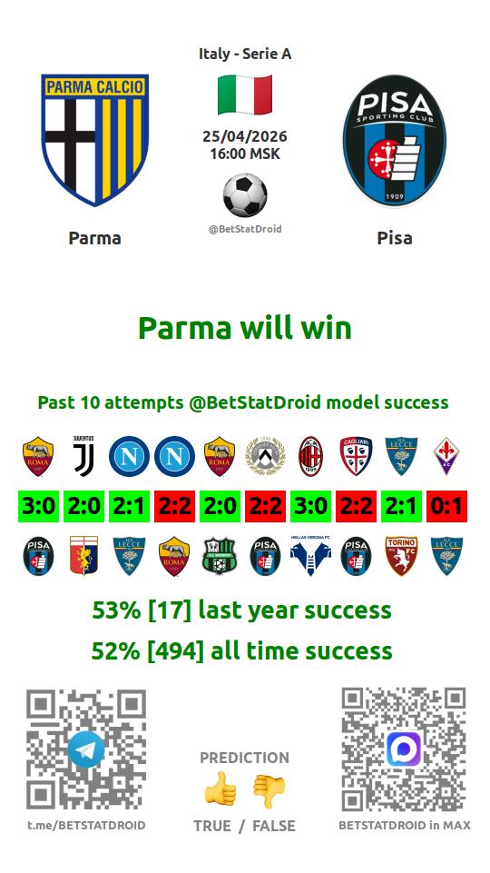 ✔ Parma scores under 1,5 goals in each of 8 last games