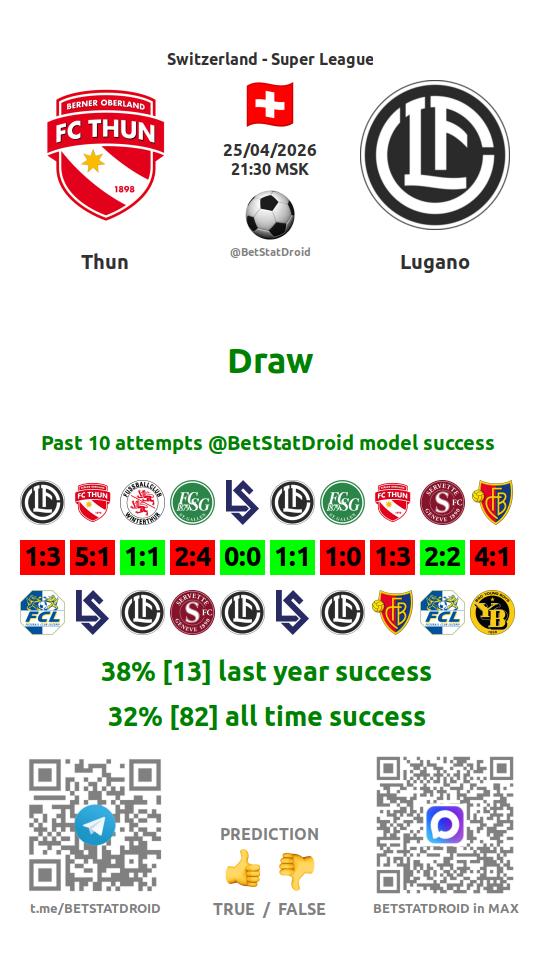 ✔ Thun lost under 2,5 goals in each of 26 last games