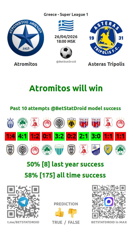 ✔ Atromitos lost under 2,5 goals in each of 38 last games