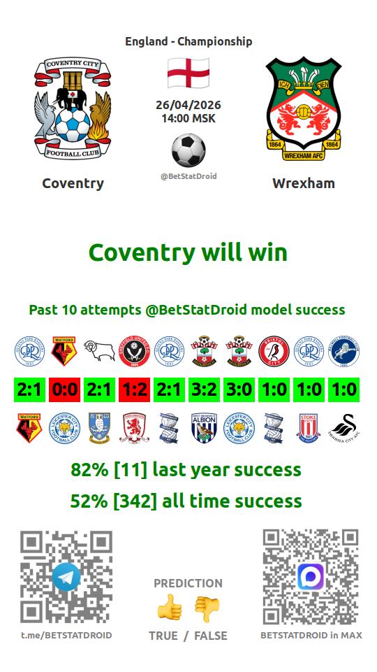 ✔ Coventry lost under 2,5 goals in each of 18 last games