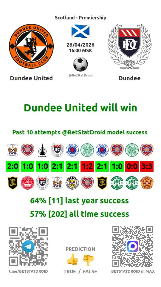 ✔ Dundee United scores under 2,5 goals in each of 13 last games