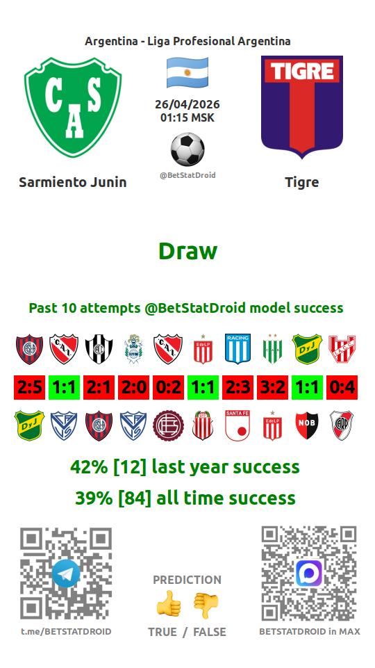 ✔ Sarmiento Junin scores under 2,5 goals in each of 39 last games