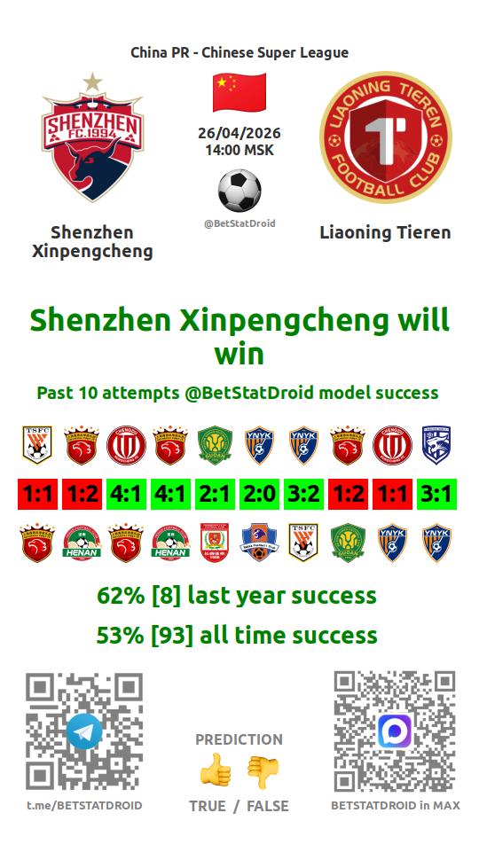 ✔ Shenzhen Xinpengcheng have not drawn their last 7 games