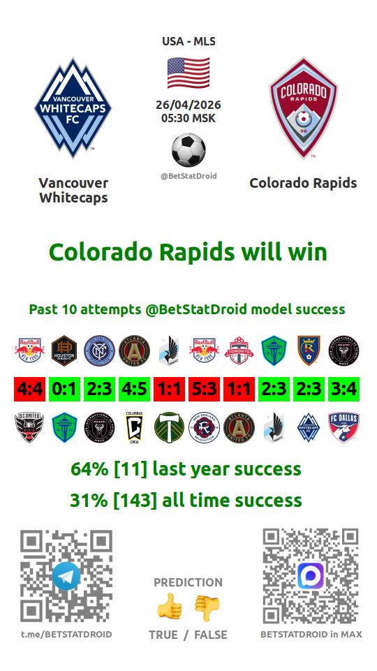 ✔ Colorado Rapids scores under 2,5 goals in each of 8 last games