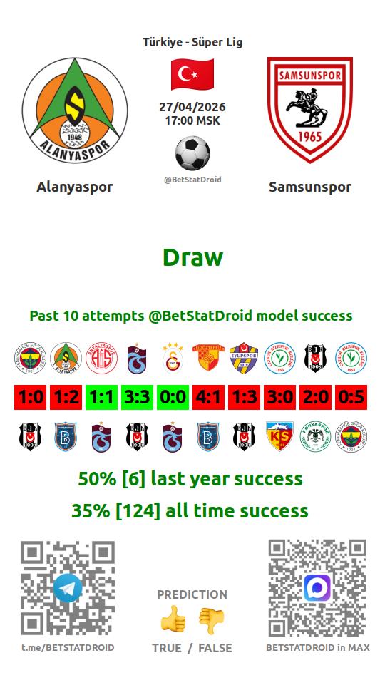 ✔ Samsunspor scores under 2,5 goals in each of 10 last games