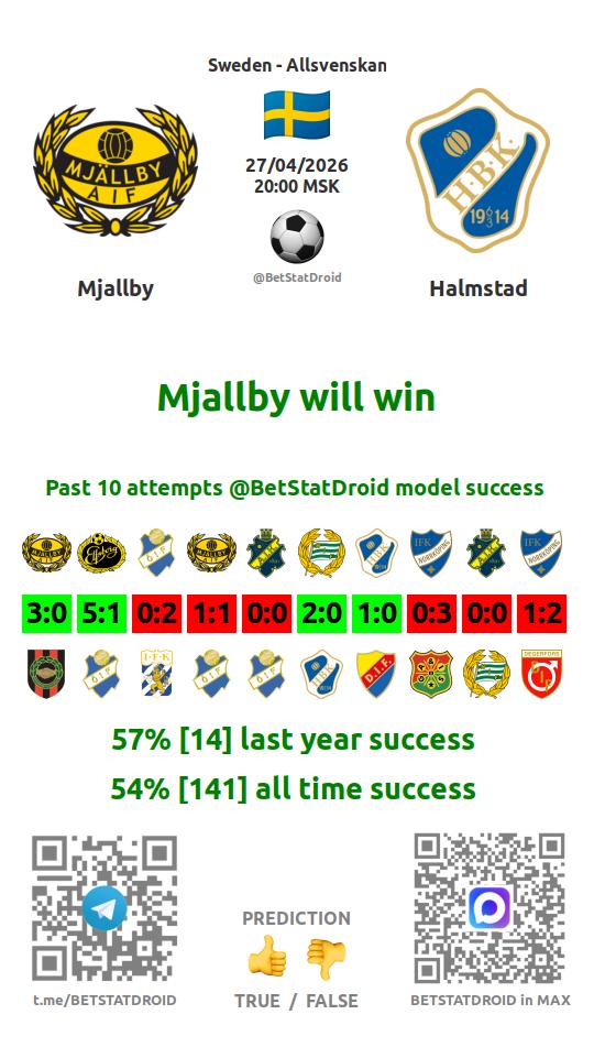 ✔ Mjallby lost under 2,5 goals in each of 26 last games