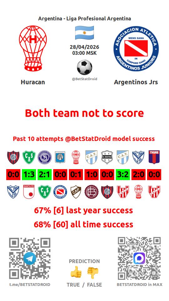 ✔ Huracan scores under 1,5 goals in each of 7 last games