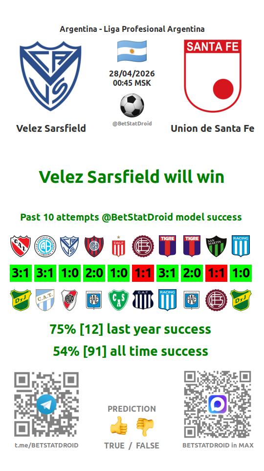 ✔ Velez Sarsfield scores under 2,5 goals in each of 11 last games